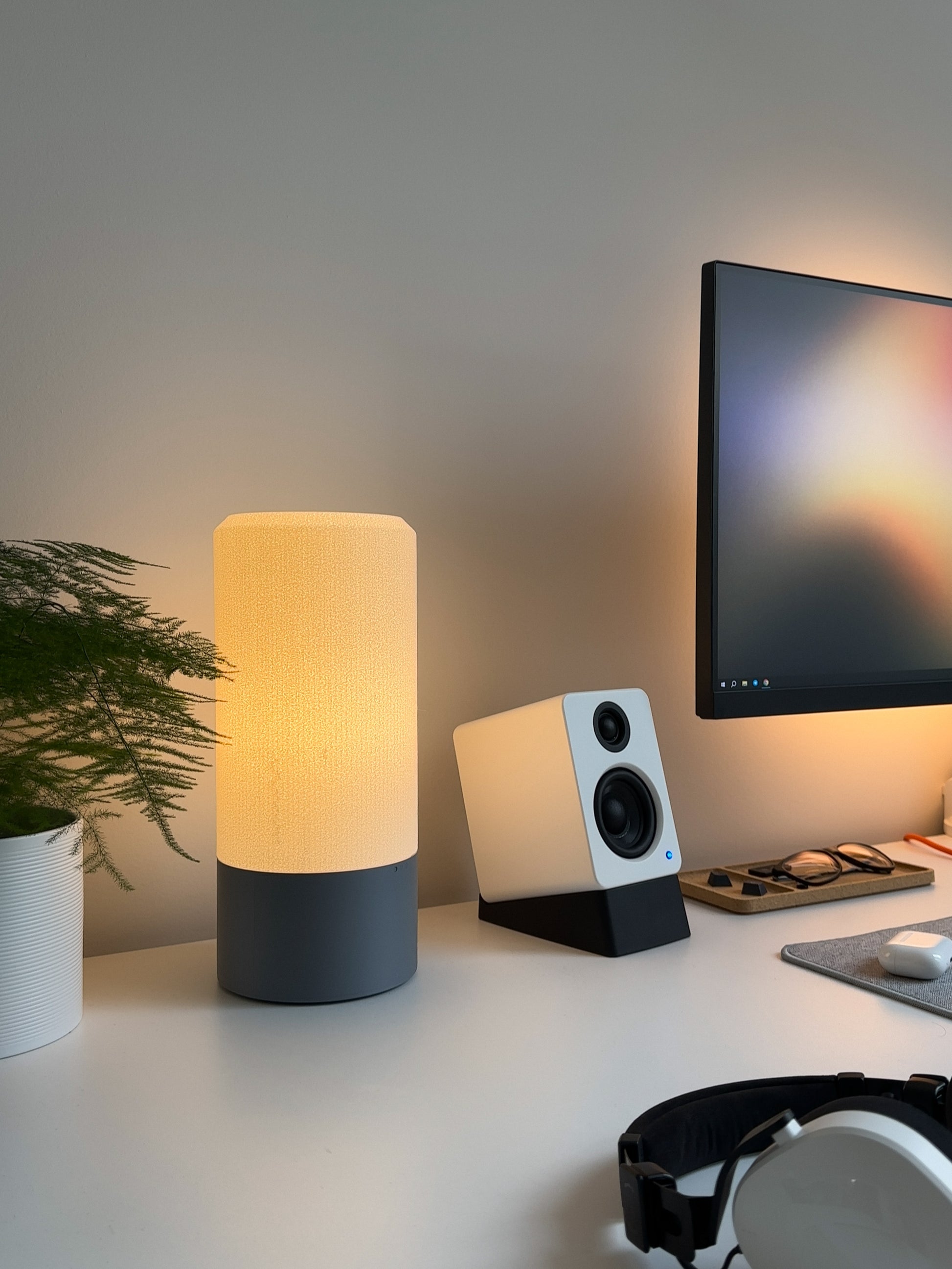 A modern 3D Printed Lamp with a Simple Textured Shade | Unique Ambient Lighting for Home Décor